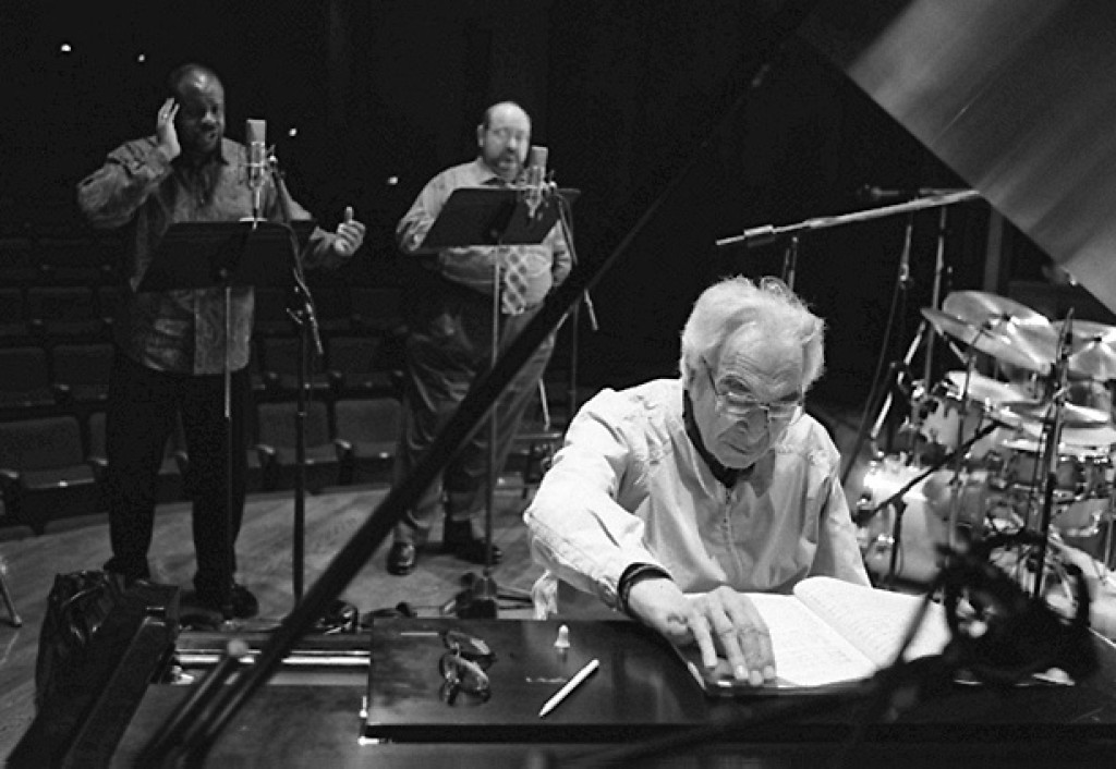 Dave Brubeck, Kevin Deas, and Alberto Mizrahi. The Gates of Justice recording session, Goucher College. Baltimore, Maryland.