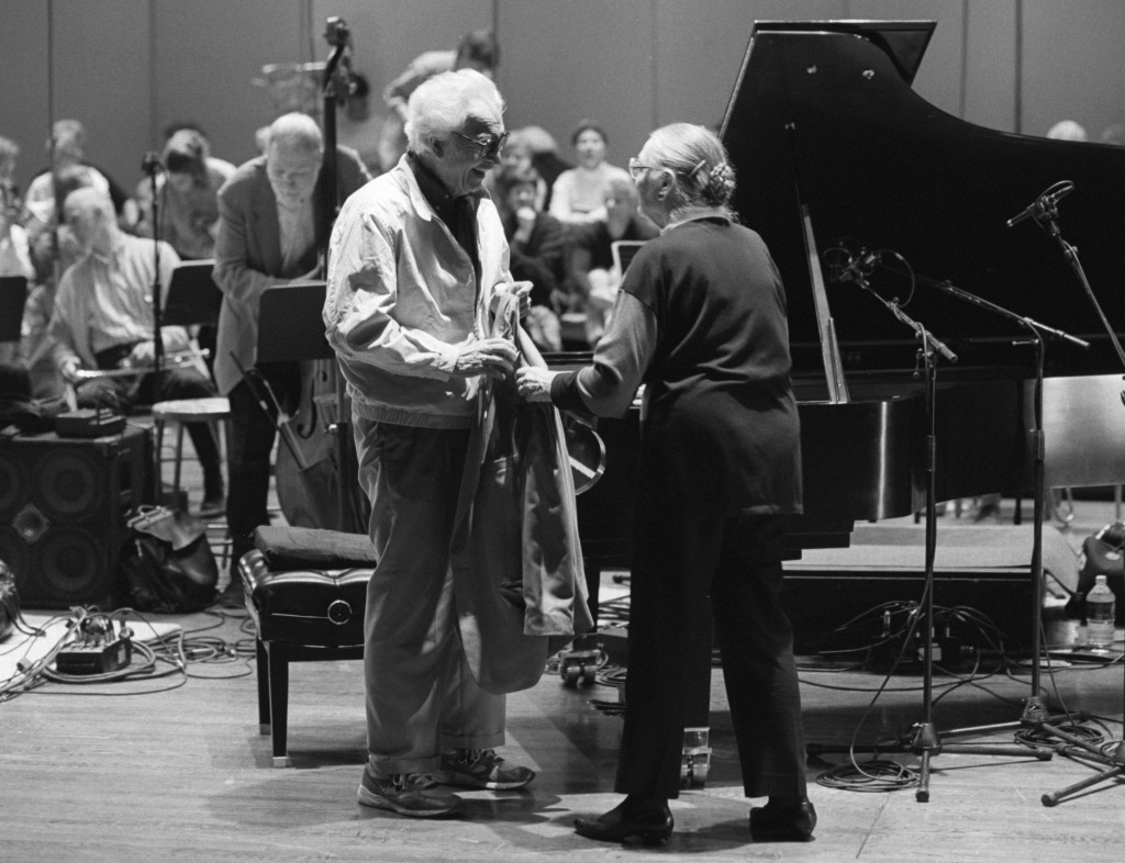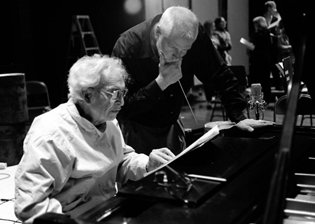 Dave Brubeck and Russell Gloyd. The Gates of Justice recording session, Goucher College. Baltimore, Maryland.