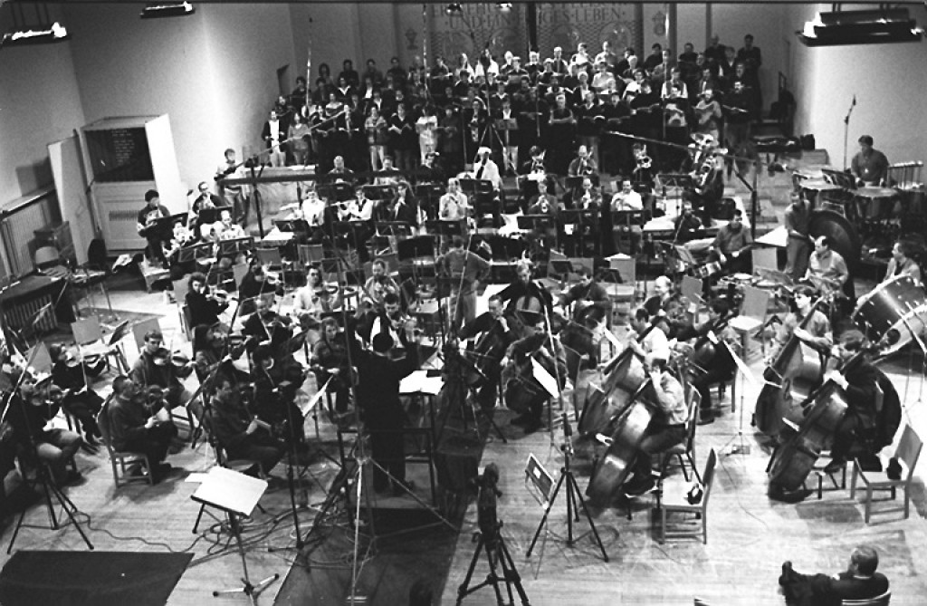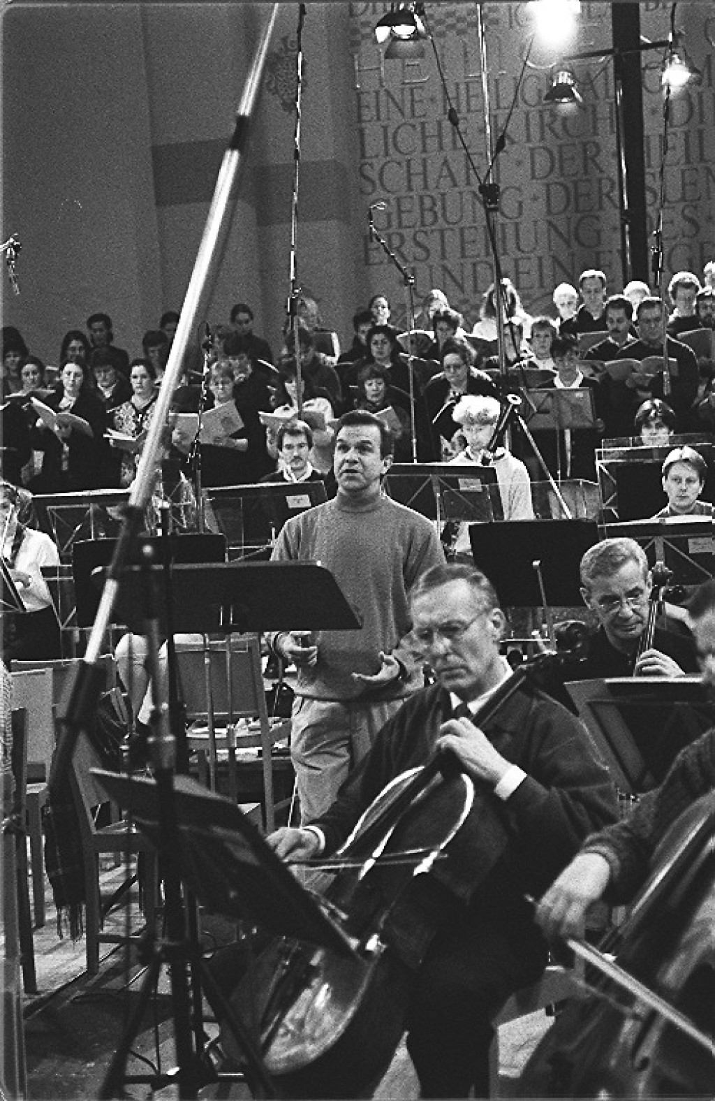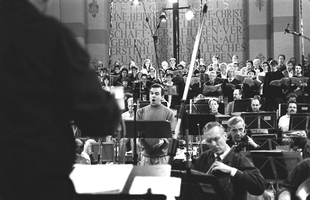 Gerard Schwarz, Robert Brubaker, the Ernst Senff Choir, and the Rundfunk-Sinfonieorchester Berlin. Avodat Shabbat recording session, Jesus-Christus-Kirche. Berlin, Germany.