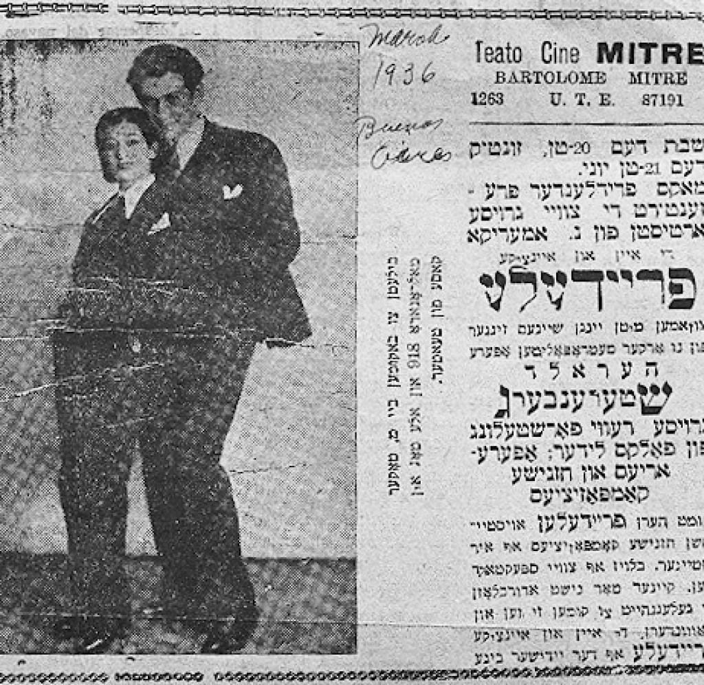 Newspaper advertisement, in Yiddish, featuring Freydele Oysher and Harold Sternberg, Buenos Aires, 1936.